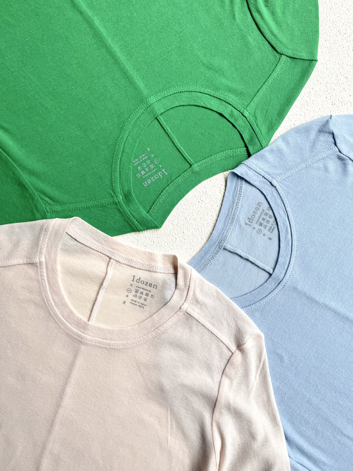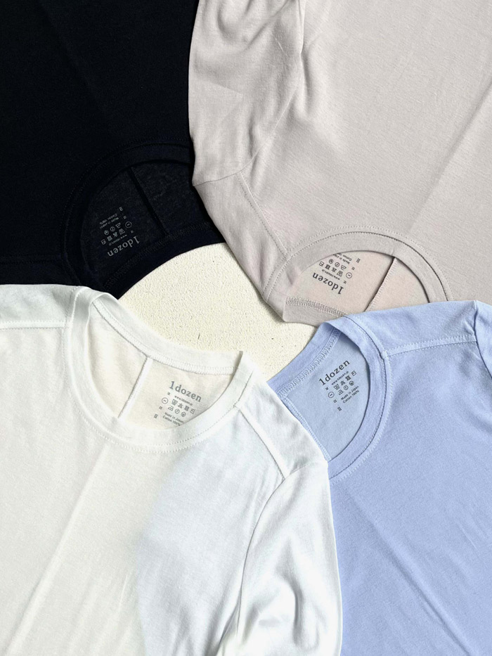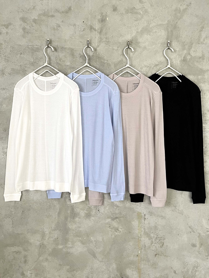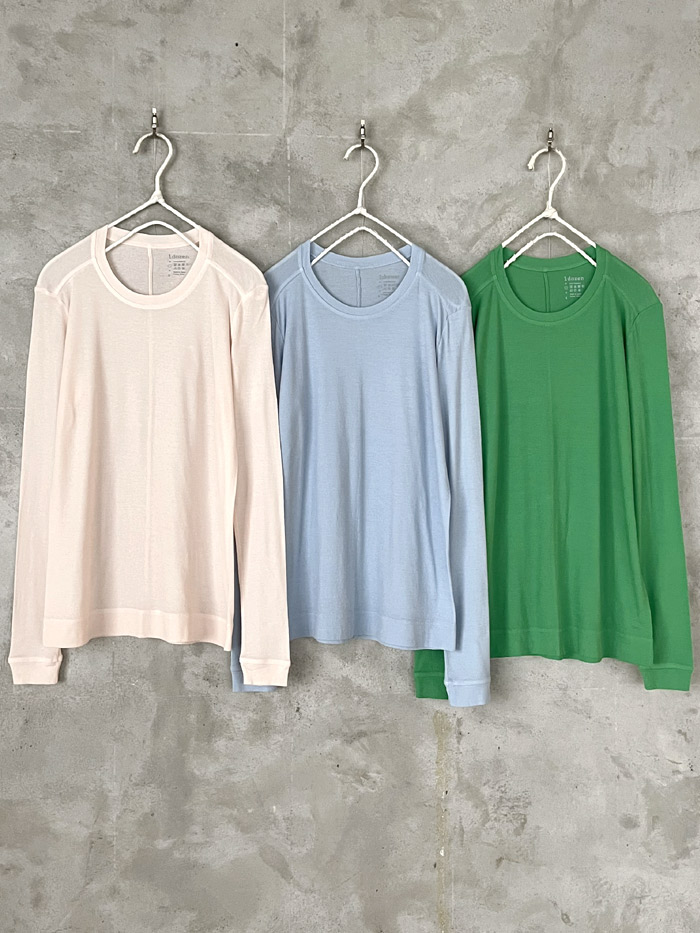 毎シーズン好評の1dozen(イチダース)の “オーガニックコットンシフォン シリーズ”。春らしいpale pinkuやcanariaに加え、新色のforest greenが登場です。これからの季節の重ね着に、ニットやシャツのインナーとして袖口や裾からカラーを効かせてコーディネートをお楽しみください。 |