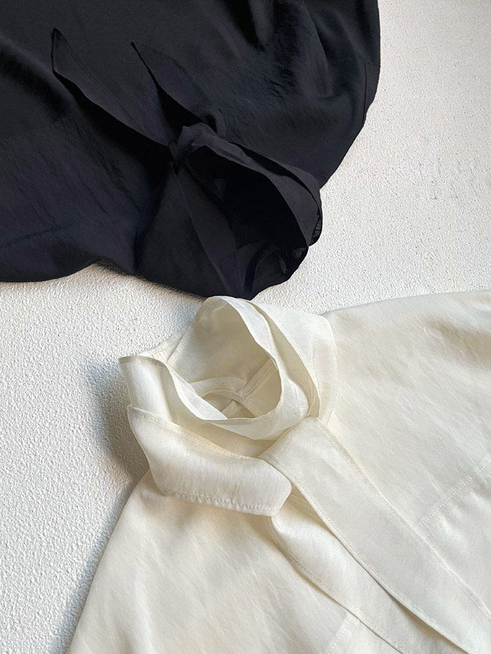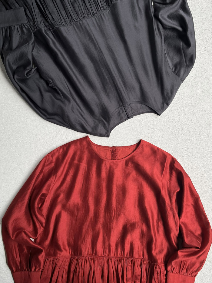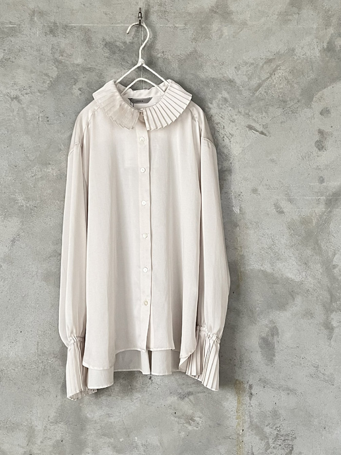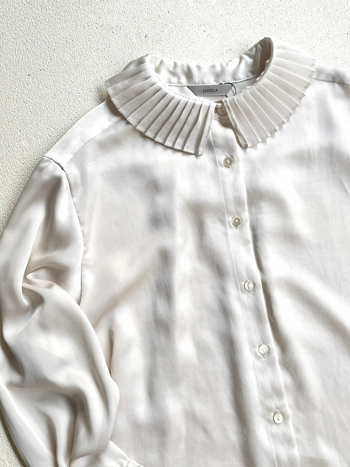 [ サテンワッシャー プリーツブラウス ]