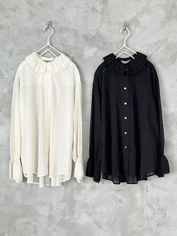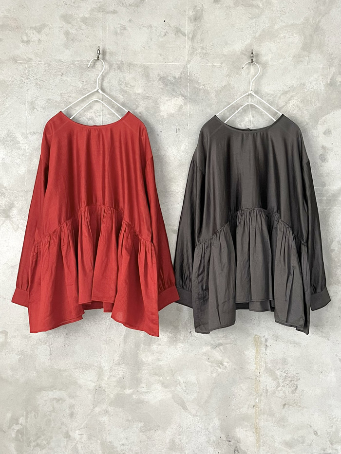 [ コットンシフォン ピコギャザーブラウス ]