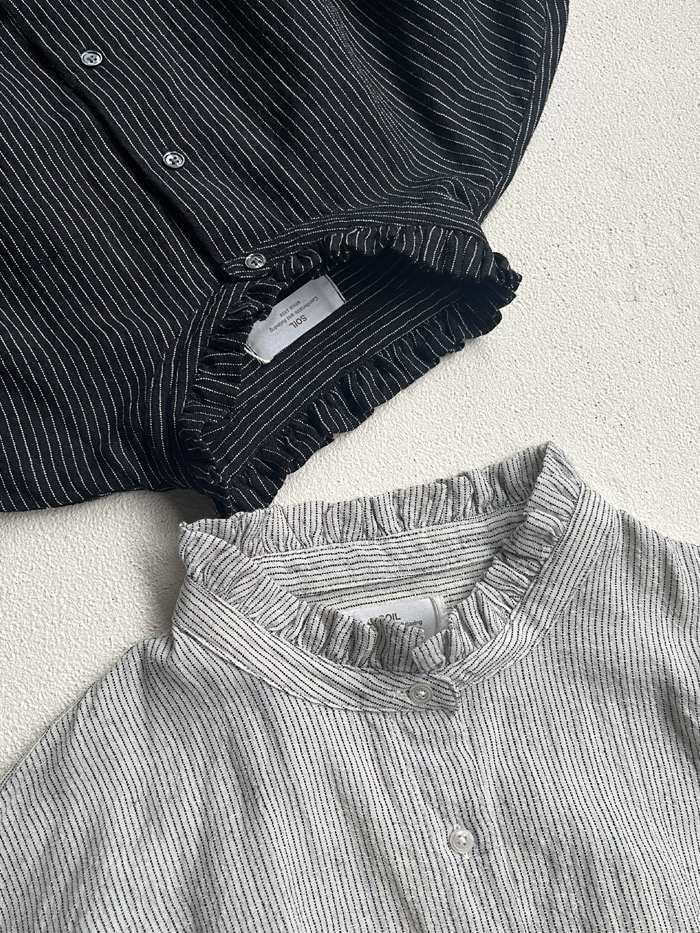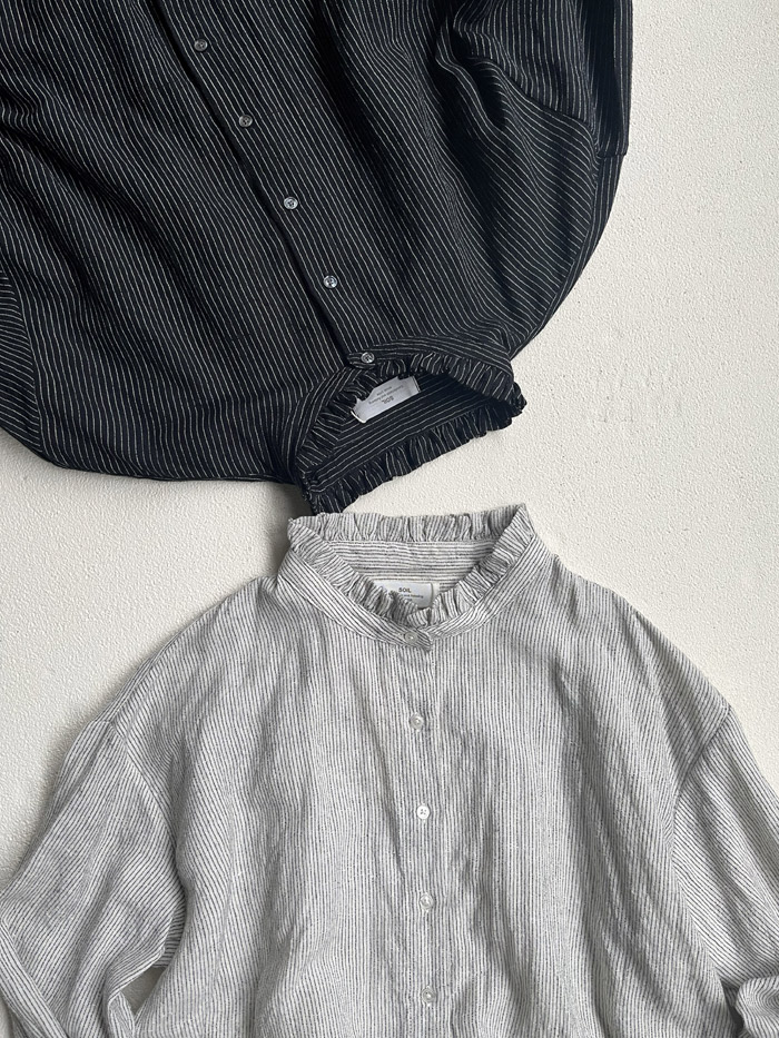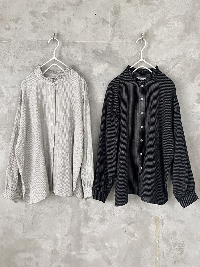 [ Wool/Linen Stripe Frill Collar Shirt ]