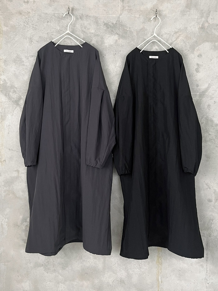 [ Plain Polyester x Plain Polyester Heat Quilt Oversized No Collar Coat with Ribbed Cuff ]