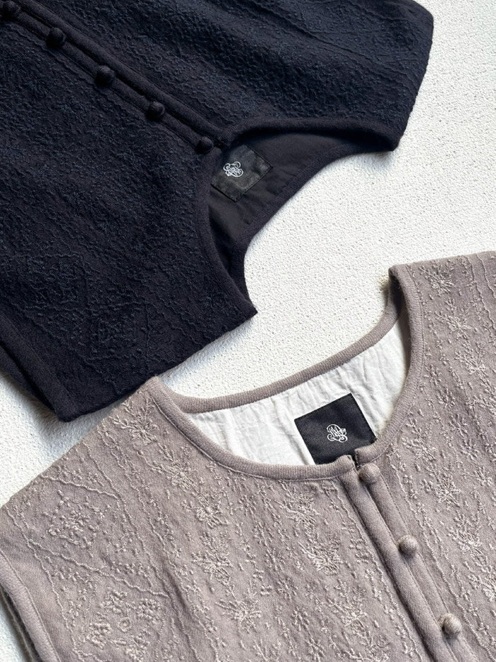 [ Boiled Wool Plain Emb Bolero ]