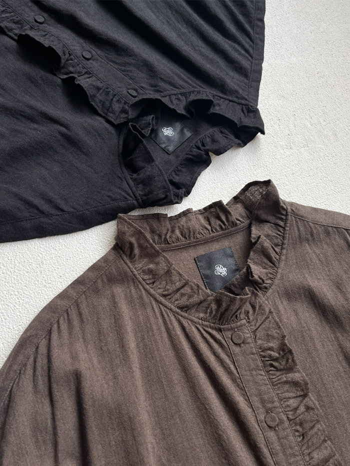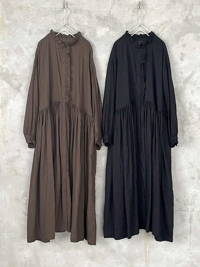 [ Wool/Cotton/Silk Plain Frill Collar Shirt Dress with Rajasthan Gather ]