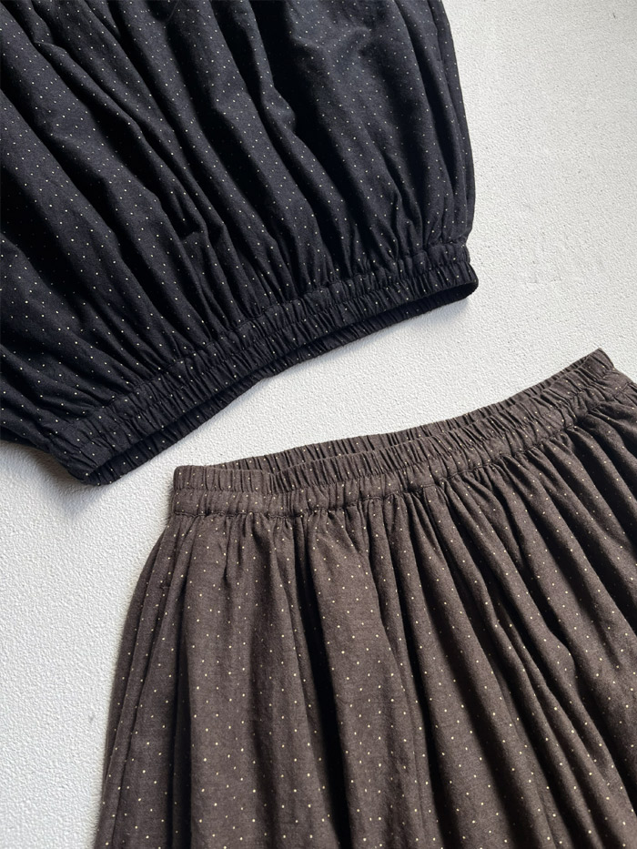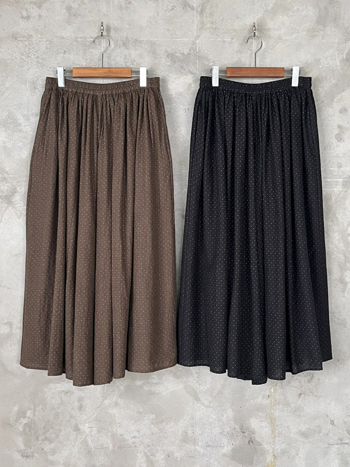 [ Wool/Cotton/Silk Pin Dot Print Gathered Culottes ]