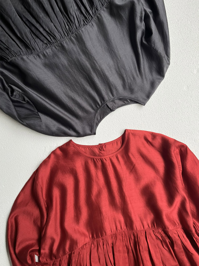 [ Cotton/Silk Rajasthan Tuck Gathered Pullover ]