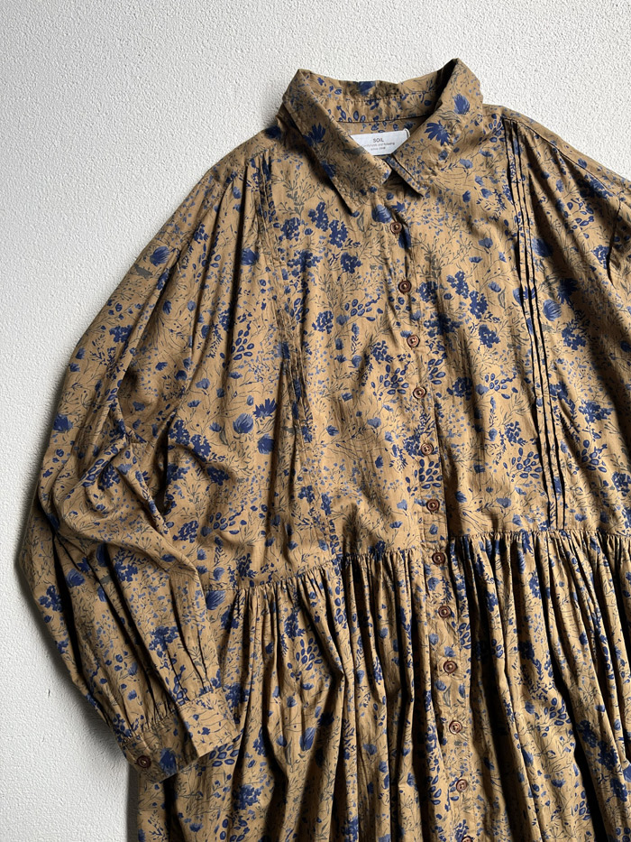 [ 60s Cambric Flower Print Regular Collar Dress ]
