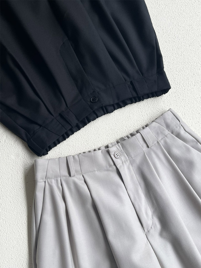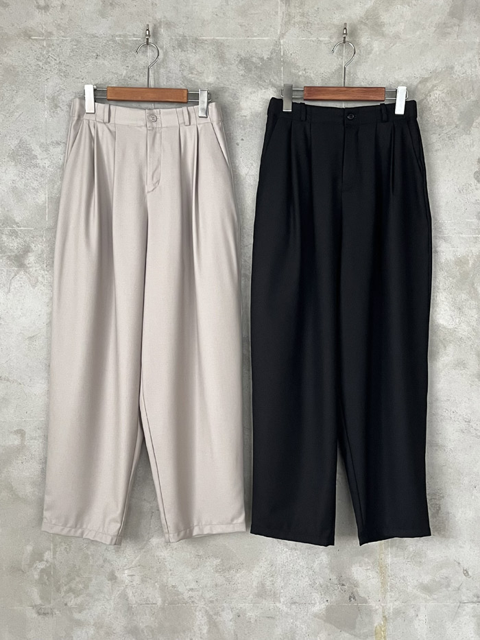 [ Cotton Tuck Wide Pants ]