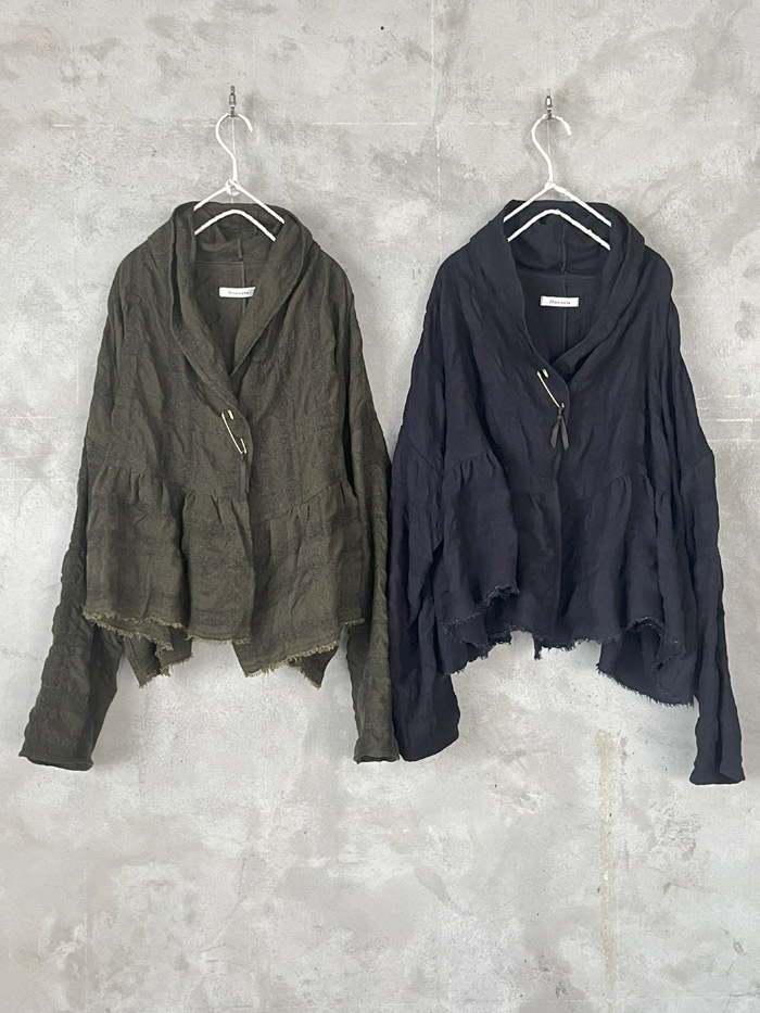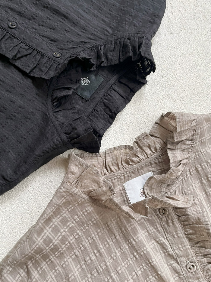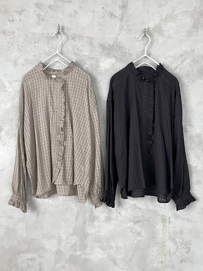 [ Handwoven Cotton/Silk Self Check Frill Collar Shirt ]