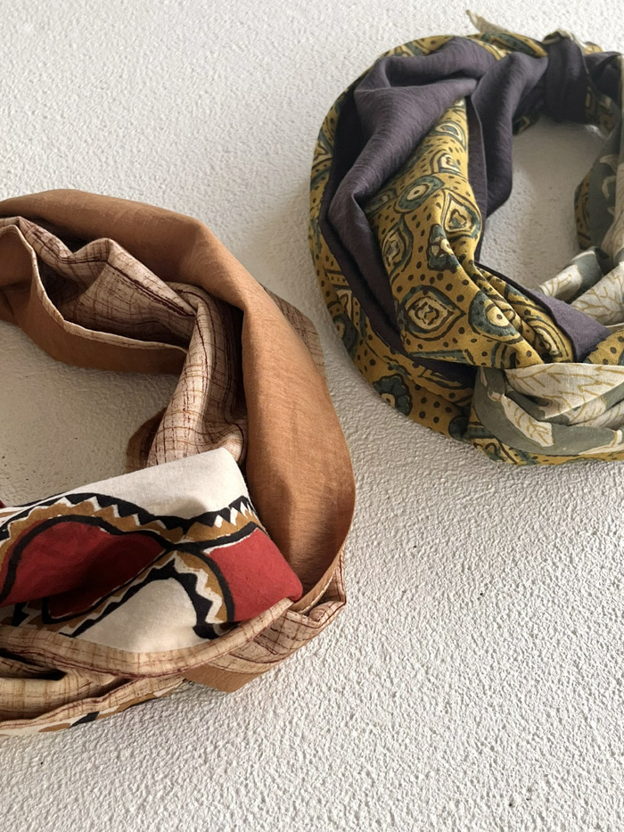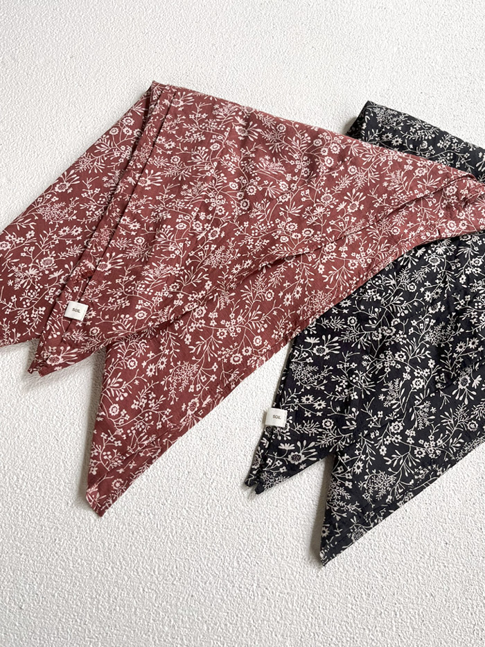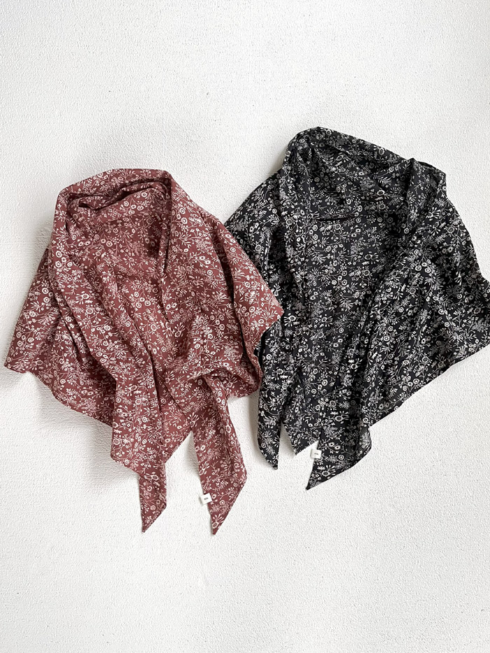[ Cotton Slub Small Flower Print Triangle Stole ]