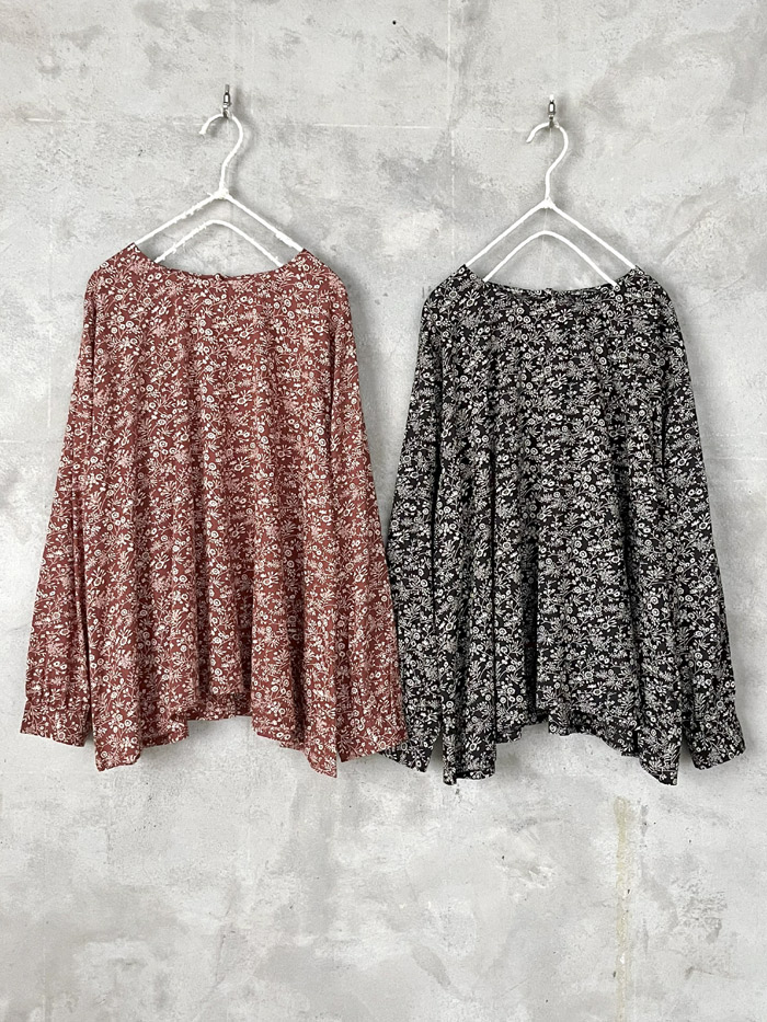 [ Cotton Slub Small Flower Print Back Opening Smock ]