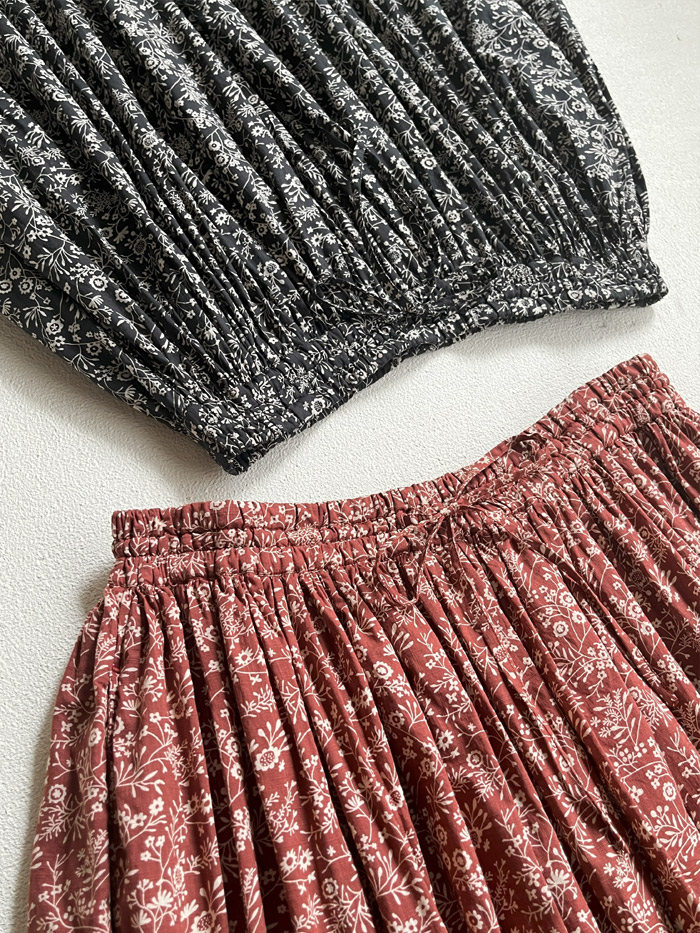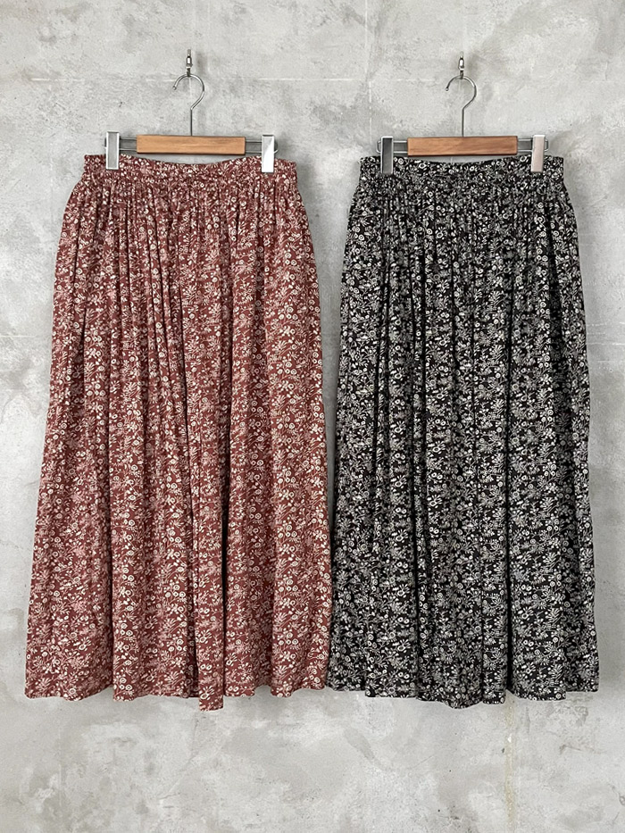 [ Cotton Slub Small Flower Print Gathered Skirt ]