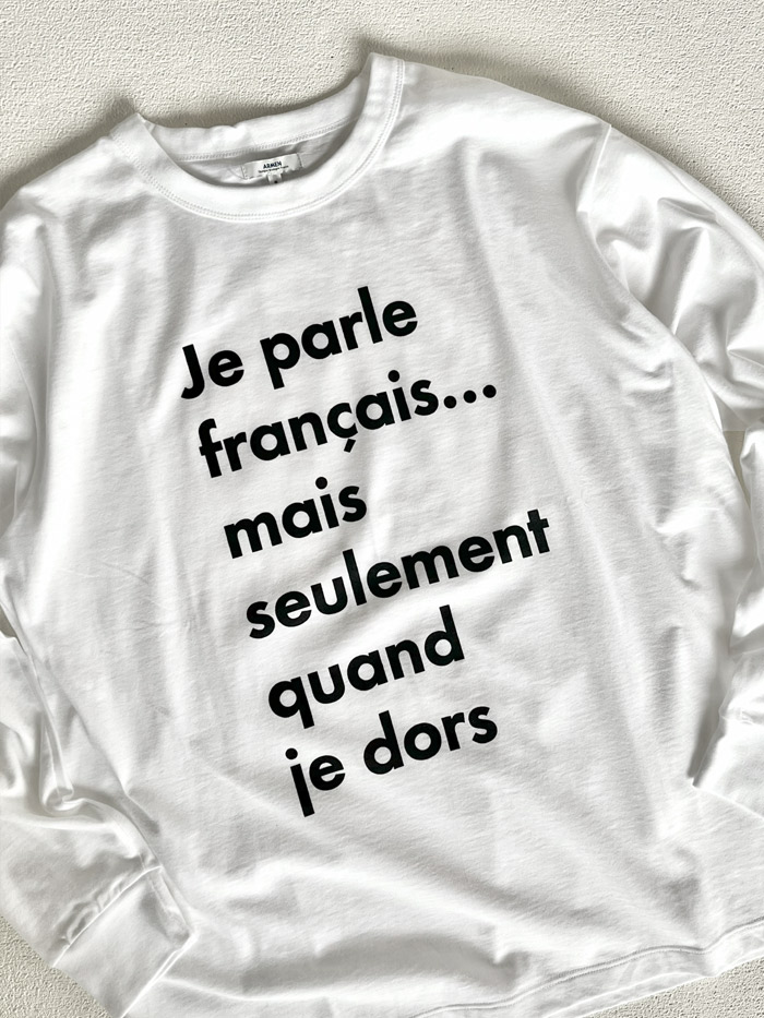 [ “JE PARLE” Cotton Jersey Crew Neck Oversize L/SL T-shirt with Cuff ]
