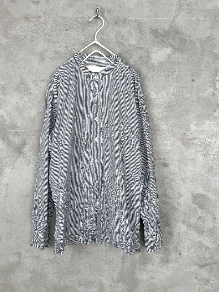 [ Yarn Dyed Cotton Stripe Banded Collar L/SL Shirt ]